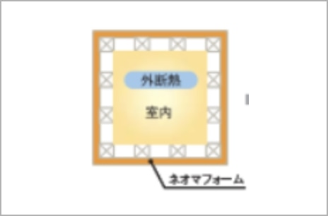 外断熱で使用するネオマフォームは気密・断熱性に優れ、熱損失が少ないので室温を一定に保ちます。長期に渡って高い断熱性能を発揮します。