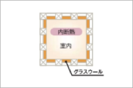 内断熱は、柱の間にグラスウールを100mm充填します。