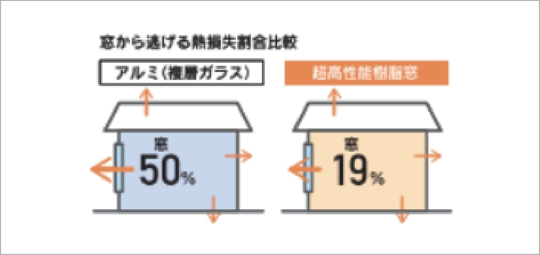 樹脂フレームとトリプルガラス、アルゴンガス入で窓から住宅を高断熱化し、エネルギー消費の削減はもちろん、室内の温熱環境を改善し快適な住環境を実現させます。