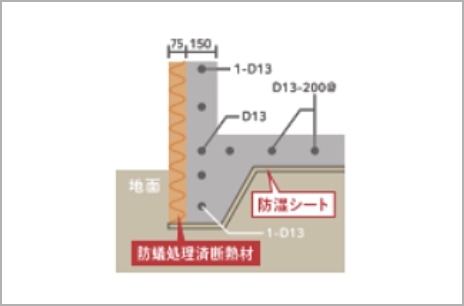デワホームでは基礎の外側全周に、北海道では主流の基礎断熱工法を採用。地面からの熱を遮断し、床から暖かい住まいをつくります。