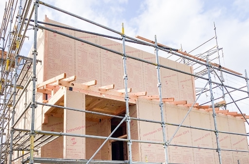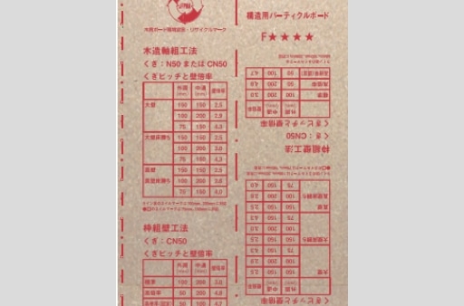 デワホームでは、国土交通大臣認定を 取得した9mm厚パーティクルボード の構造用耐力面材を採用。 壁の素材をノボパンにするだけで耐震性能が2.4倍に高まり、高価な制震装置を入れるよりも遥かに安く、高い耐震性能を得ることができます。