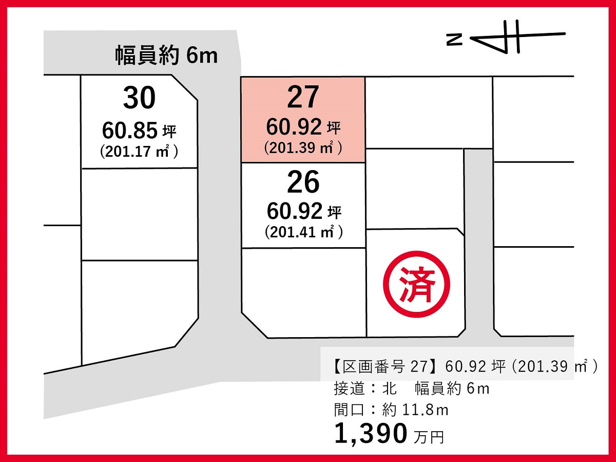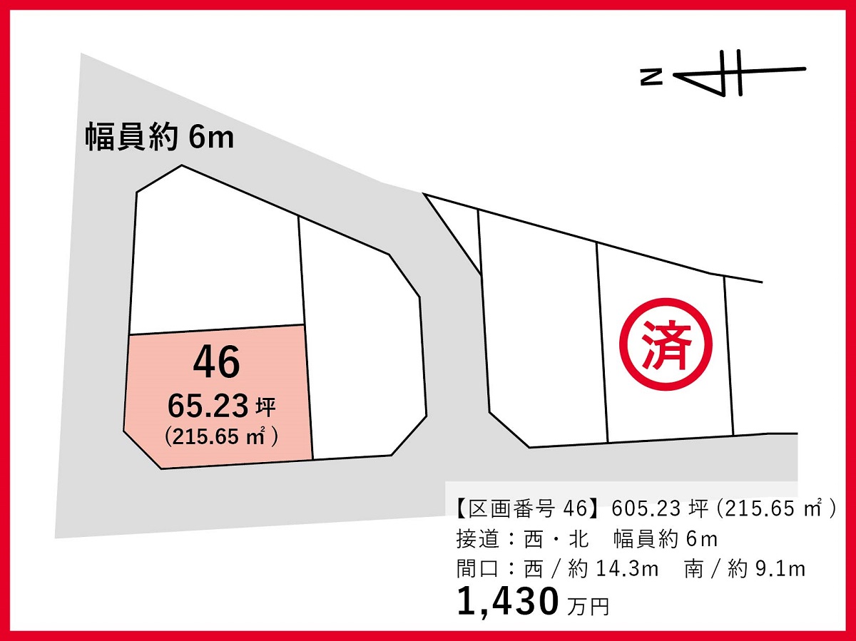 造成完了後のお引渡しにつき、若干の地積変更の可能性があります