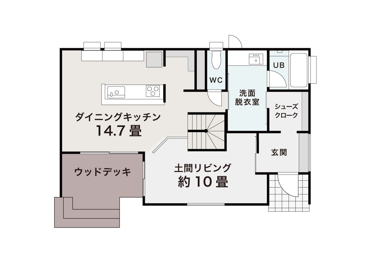 玄関からつながる土間リビングで小さな店舗運営も可能にしたプランです。