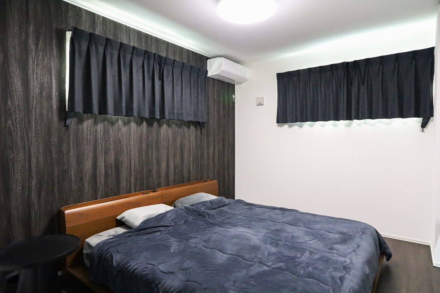 モノトーンで統一した重厚的なシンプルモダンインテリア。大理石調のフローリングの光沢感やリビングの間接照明とのコントラストによって非日常的でラグジュアリーな空間を演出しています。収納もたっぷりで実用性や暮らしやすさも◎